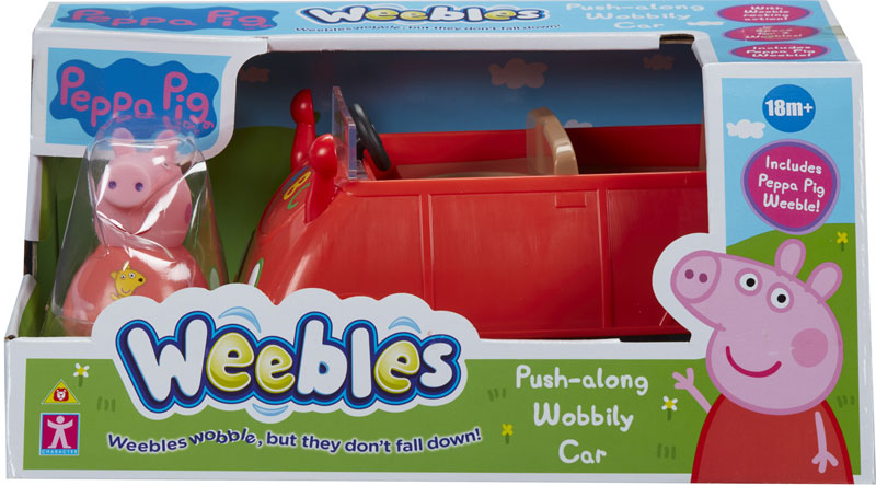 Weebles Wobble, but they don't fall down! Push Peppa's classic car to see the wibble wobble action! This fun free-wheeling Peppa Pig Car includes a Peppa Weebles figure. There's space for 2 Weebles figures (1 figure supplied). Scaled for play with other Peppa Pig Weebles figures, vehicles and playsets. Collect them all!